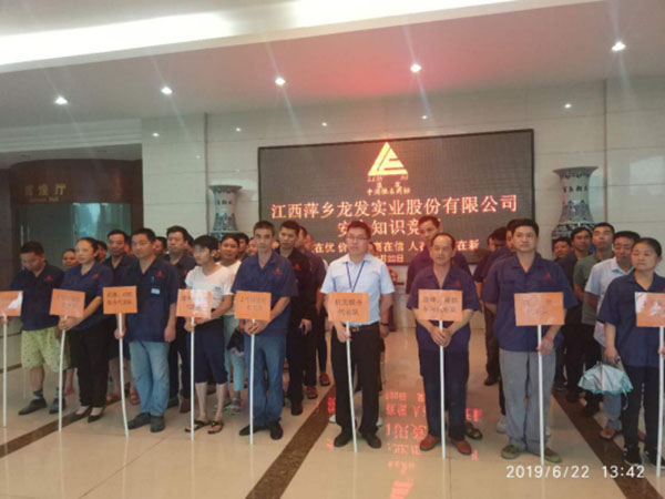 努力開拓龍發(fā)實業(yè)安全生產(chǎn)工作新篇章——龍發(fā)實業(yè)2019年安全知識競賽活動圓滿成功2019年6月22日,江西萍鄉(xiāng)龍發(fā)實業(yè)股份有限公司安全生產(chǎn)知識競賽順利舉行,來自公司的10個代表隊共50名選手經(jīng)過激烈角逐參加了此次決賽,本次安全生產(chǎn)知識競賽是龍發(fā)實業(yè)舉辦的安全生產(chǎn)知識競賽,公司各級...
