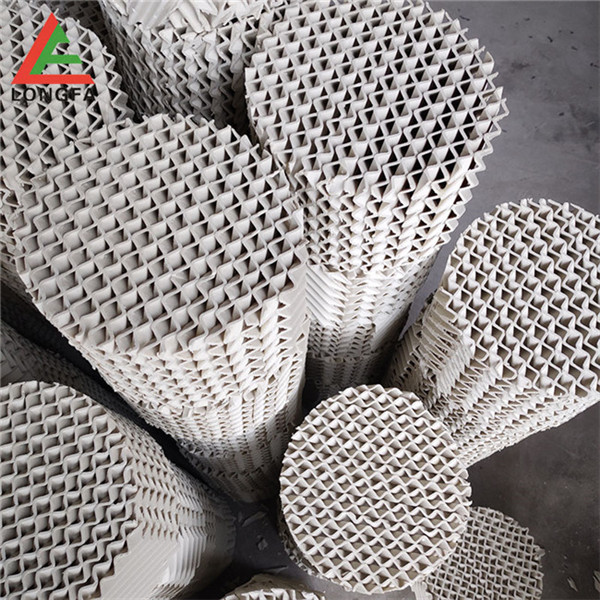 陶瓷規(guī)整填料是一種在培內(nèi)以均勻幾何圖形排布,整齊堆砌的培填料。規(guī)整填料主要是取代塔內(nèi)散堆填料,解決阻力大、比表面積小,傳質(zhì)效能差、易破碎等突出問題。它規(guī)定了氣液流路.改善了淘流、壁流和潤濕性能.降低了阻力,同時提供更多的氣液接觸面積從而提高了傳質(zhì),傳熱效果??蓮V泛用于煤氣洗滌塔.焦化洗滌,洗苯、洗氨培、化肥熱氣飽和、脫硫酸、硫酸干燥、吸收塔等。陶瓷波紋規(guī)整填料是用硬質(zhì)瓷構(gòu)成,主要成分粘土、石英、長石等經(jīng)特殊烘燒而成。其形成是由許多具有相同幾何形狀的單元體波紋片相互平行,叉疊加組成。