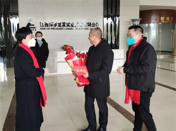 1月17日,湘東區(qū)委副書(shū)記、區(qū)長(zhǎng)鄭銳帶領(lǐng)湘東區(qū)統(tǒng)戰(zhàn)部領(lǐng)導(dǎo)一行,向公司董事長(zhǎng)羅接發(fā)送上了鮮花和慰問(wèn)金,向企業(yè)送來(lái)了新年的關(guān)懷和祝福。