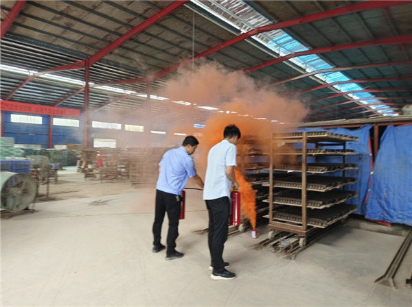 本次演練以模擬公司填料成型車(chē)間某處因電線老化,引發(fā)火情,現(xiàn)場(chǎng)濃煙彌漫,生產(chǎn)小組組織人員組織緊急疏散逃生和應(yīng)急處理火情。義務(wù)隊(duì)組織義務(wù)消防員,使用干粉滅火器,撲滅初期火情。