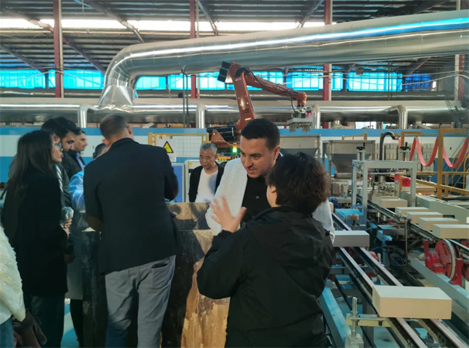 為更好的實(shí)地驗(yàn)證產(chǎn)品品質(zhì),代表團(tuán)深入全自動(dòng)陶瓷耐酸磚生產(chǎn)車(chē)間,全程觀摩從原料制配、產(chǎn)品成型、產(chǎn)品燒成、成品檢測(cè)、包裝出庫(kù)的全流程。