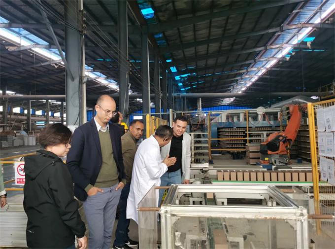 代表團(tuán)在公司董事長(zhǎng)羅接發(fā)的全程陪同下,先后參觀了產(chǎn)品展廳、先進(jìn)陶瓷研發(fā)檢測(cè)中心、全智能數(shù)字化耐酸磚生產(chǎn)線等核心區(qū)域,雙方就深入合作展開(kāi)深度交流。