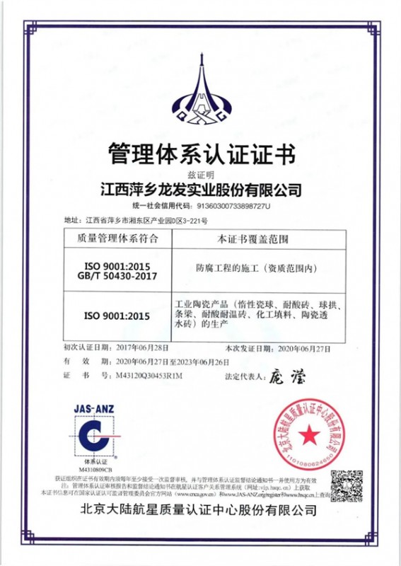 江西萍鄉(xiāng)龍發(fā)實(shí)業(yè)股份有限公司創(chuàng)建于2001年,注冊(cè)資金1.06億元,占地面積400畝,是“江西省萍鄉(xiāng)市工業(yè)陶瓷行業(yè)商會(huì)”會(huì)長(zhǎng)單位。經(jīng)過(guò)近二十年的持續(xù)健康發(fā)展,公司已成為集工業(yè)陶瓷生產(chǎn)、防腐保溫工程施工、環(huán)保設(shè)備制作與安裝于一體的大型股份制企...